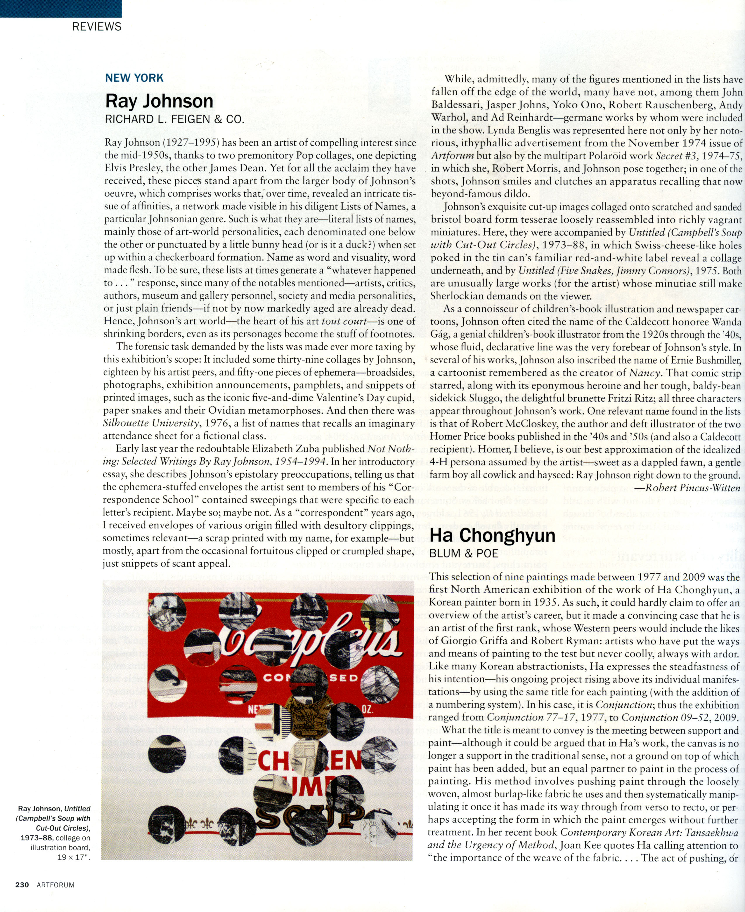 An Artforum review of Ray Johnson's first exhibition in Chicago at the Richard Feigen Gallery, 1966.